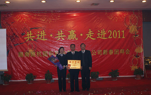 公司董事長劉(liu)年紅團拜會上(shang)新春緻詞 2010年先進集體财(cái)務部與公司董(dong)事長劉年紅合(hé)影