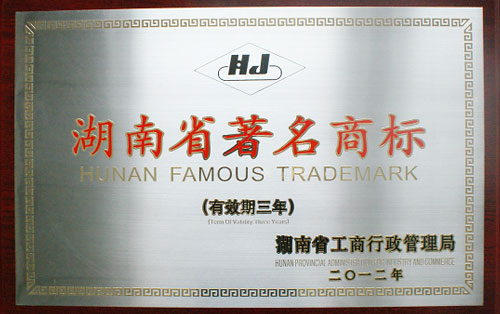 HJ商标榮(róng)獲湖南省著名(ming)商标
