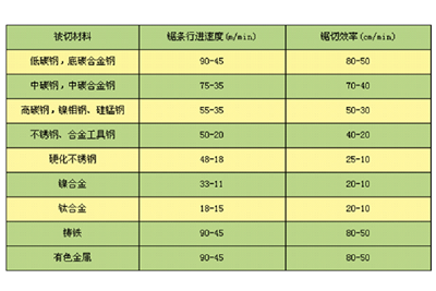 2.鋸(ju)削速度及(ji)鋸切效率(lǜ)建議參考(kao)表